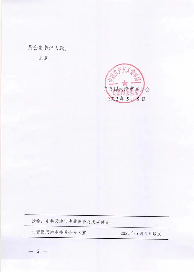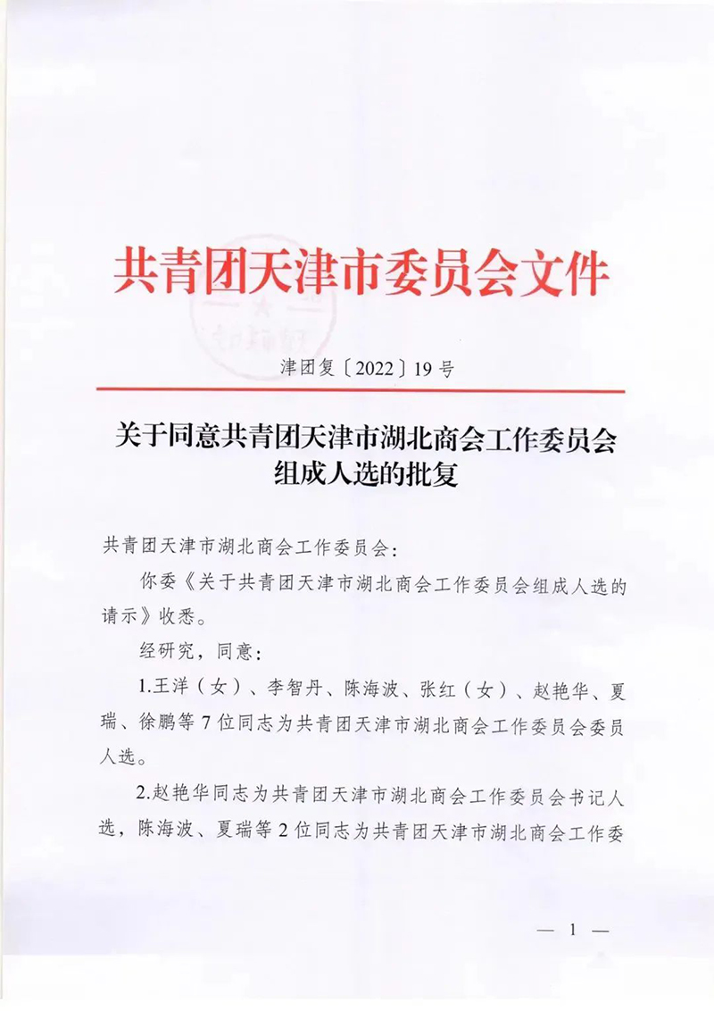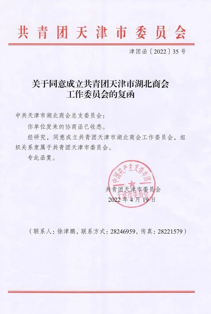 会议宣布共青团天津市湖北商会工作委员会正式成立。经商会提名,团市委复函,我司董事长赵艳华被任命为团工委书记。