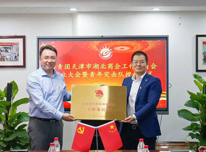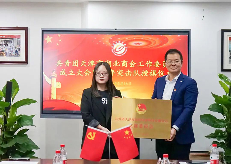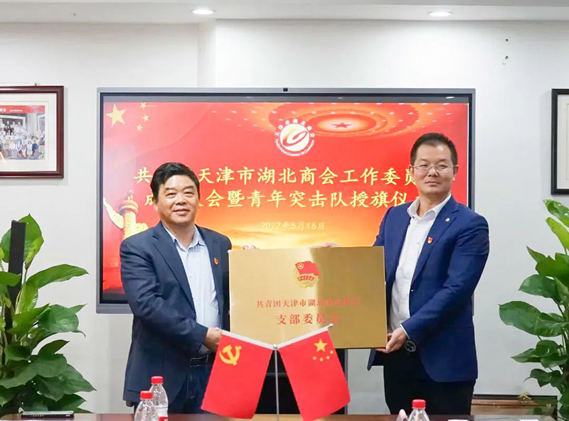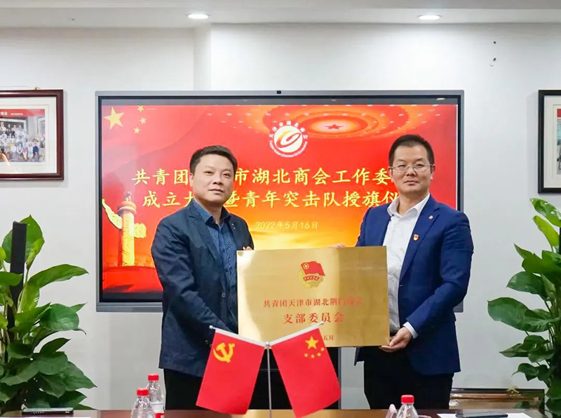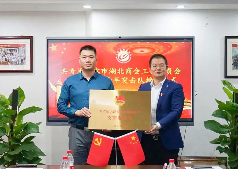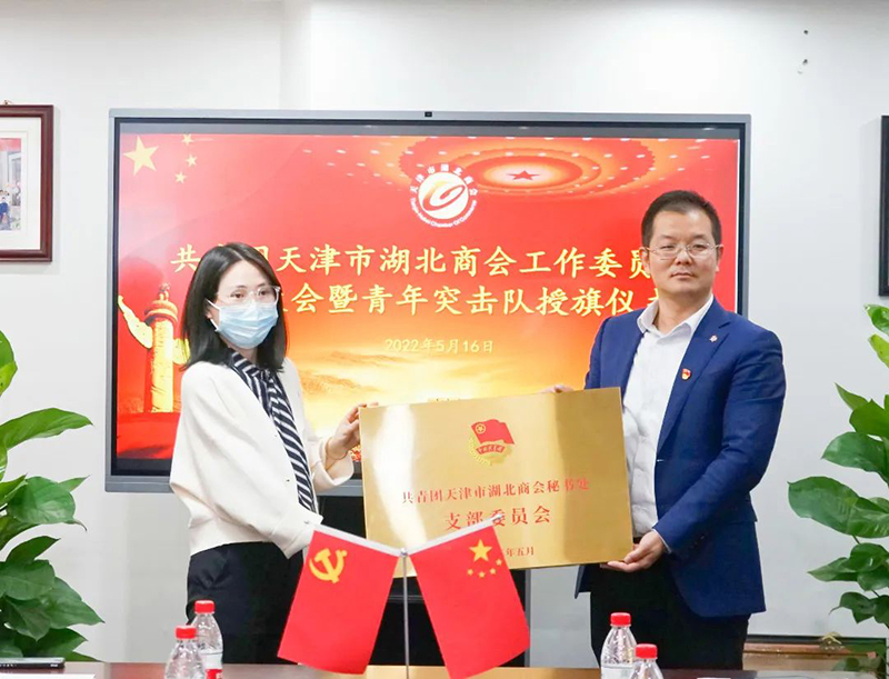 天津市湖北商会团工委书记赵艳华为商会团工委所属团支部授牌。